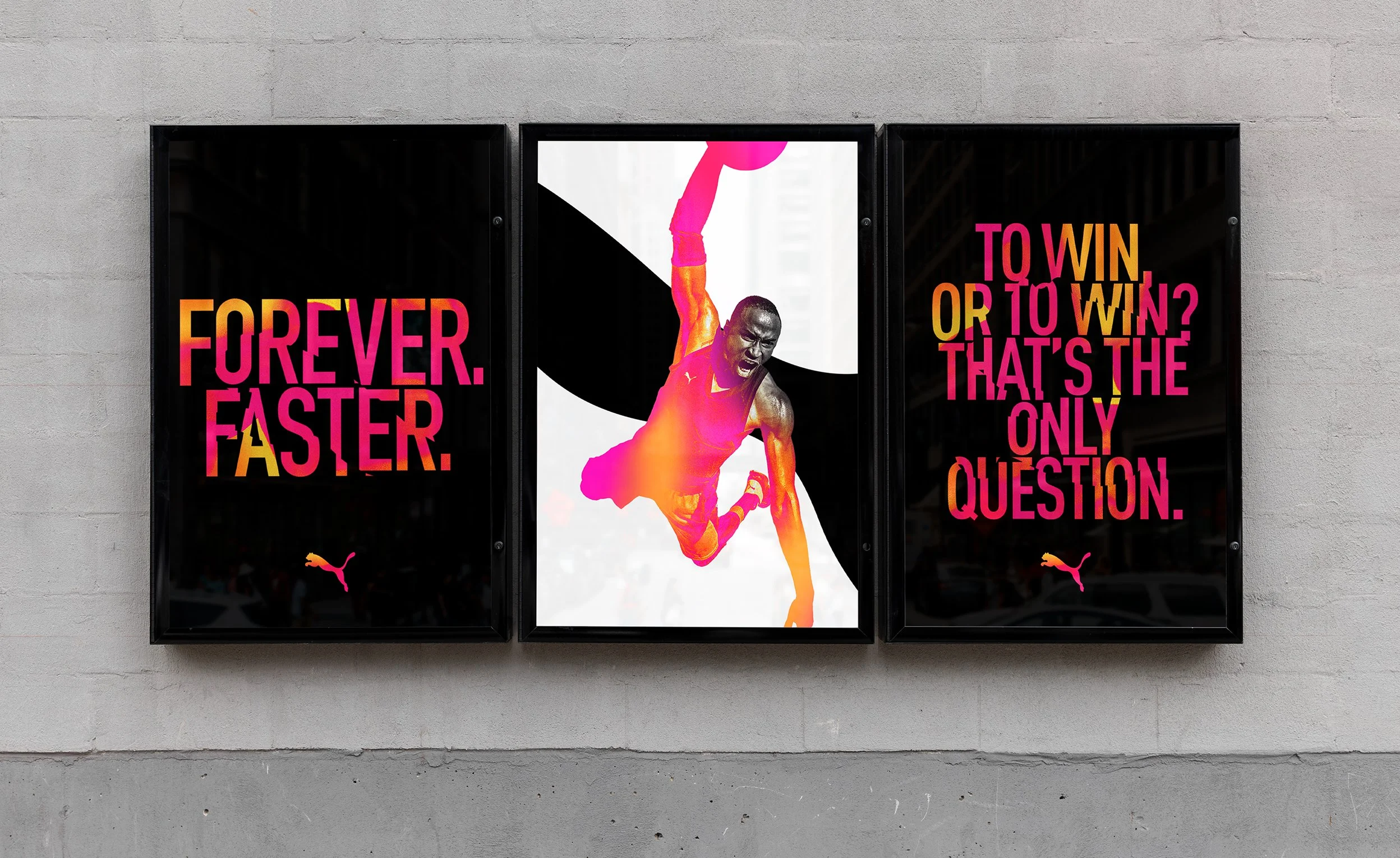 For Puma's "Forever Faster" campaign, we developed an energetic concept centered around the moment of victory. We captured the athletes' emotions and energy with a heat map aesthetic, seamlessly connecting it to the existing visual language of Puma Nitro. A visual language that could be seamlessly adapted and applied across all campaign touchpoints and events throughout 2024.