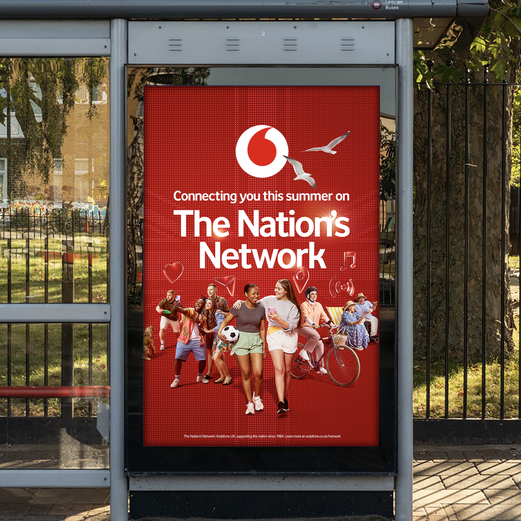 With the launch of Vodafone’s platform, “The Nation’s Network”, we developed a fully integrated campaign showcasing the many ways people are connecting across the UK this summer. The visual language inspires national pride while infusing a playful look. By introducing a dynamic, interactive text message aesthetic—featuring vibrant icons and expressive red emojis—we crafted a bold and ownable visual identity for Vodafone.